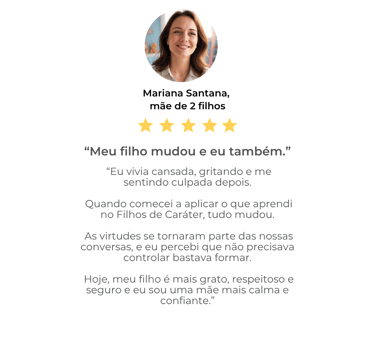 Mais de 1000 mães já transformaram suas famílias com o Filhos de Caráter.