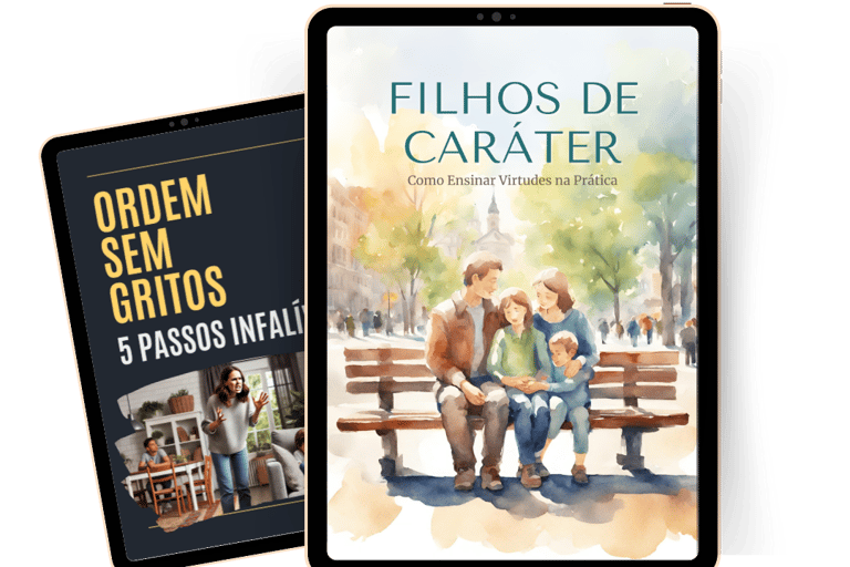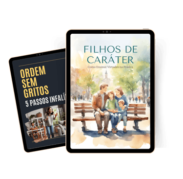 O Filhos de Caráter é o guia que mostra, passo a passo, como cultivar coragem, gratidão, honestidade e empatia no coração dos seus filhos — mesmo nos pequenos gestos do dia a dia.