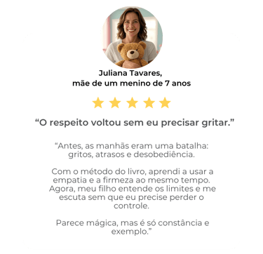 Transforme birras, desobediência e respostas atravessadas em cooperação, leveza e vínculo com um método simples que forma caráter e muda comportamento de dentro para fora.