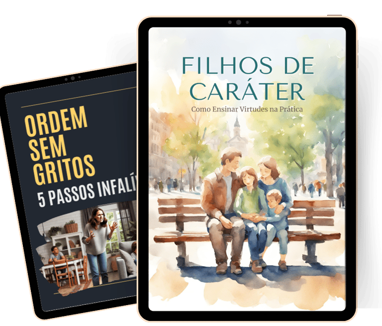 O Filhos de Caráter é o guia que mostra, passo a passo, como cultivar coragem, gratidão, honestidade e empatia no coração dos seus filhos, mesmo nos pequenos gestos do dia a dia.